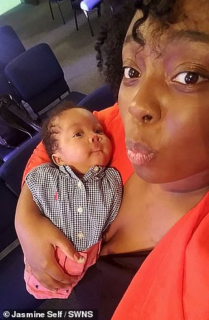 ‘I found out I was pregnant in April,’ Ms Self said. ‘I didn’t go to the doctor until August, so it was really late.